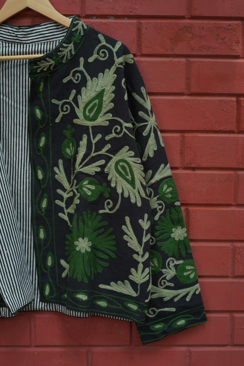 Luxurious velvet jacket featuring intricate Suzani embroidery. Perfect blend of elegance and tradition β ideal for festive and ethnic occasions.